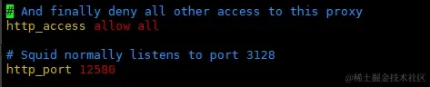 安装成功 进入 squid 修改端口(建议更改 这样会更安全) 配置文件目录在 /etc/squid/squid.conf