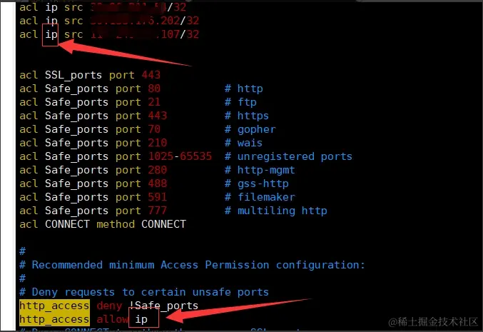 http_access allow ip 这里添加这个 allow允许 我们定义的 IP IP段使用