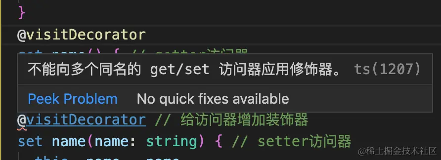 原因:现在的Test是装饰器装饰过后的类,已经装饰过后的类,Test上就有getName方法了,因此就可以识别了。
