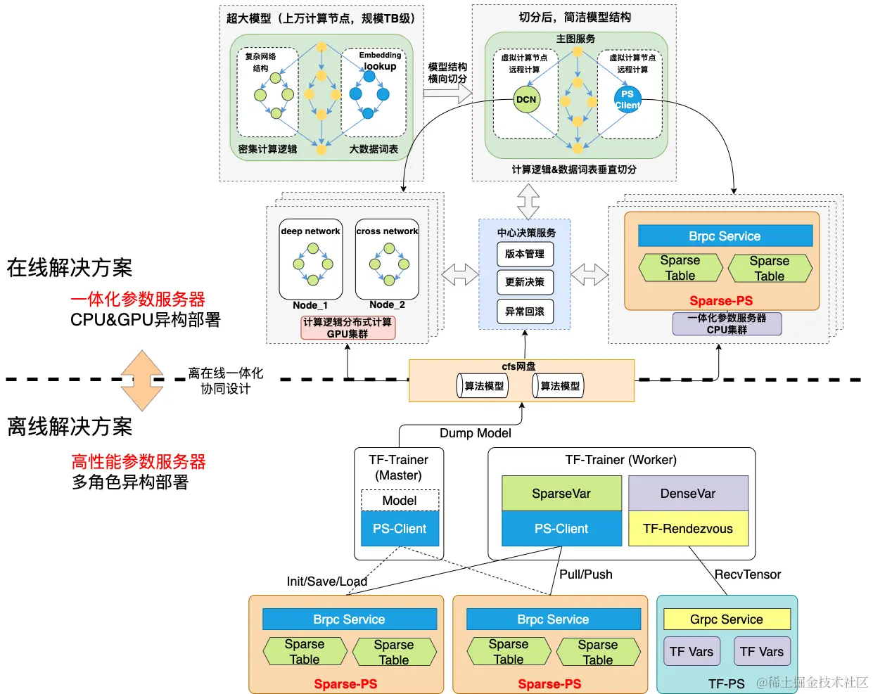 2.存储分层:稀疏&稠密参数分层,充分利用CPU/GPU存储特点