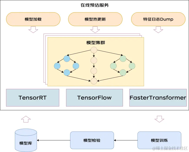 ◦模型推理服务:负责模型推理、更新和落日志,统一模型接入规则。