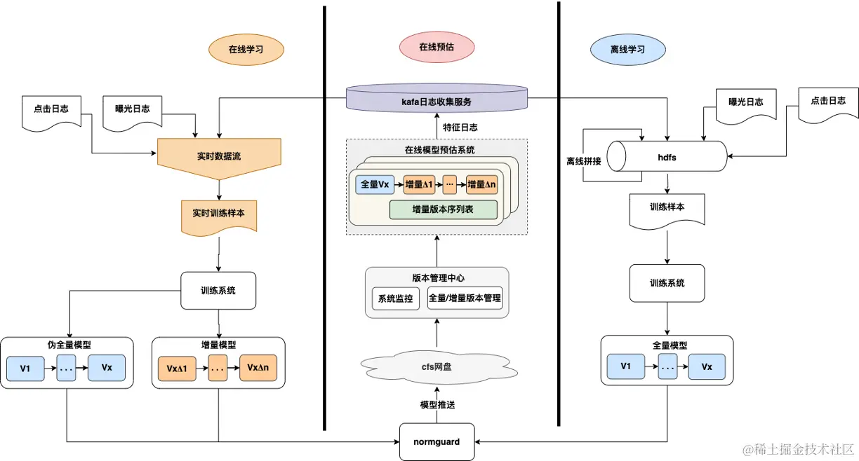1.系统支持实时流式训练,分钟级别的线上模型增量更新。
