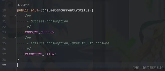 需要注意的是虽然消费状态只有成功和失败。但是消费结果却是由ConsumeReturnType这个枚举类定义的