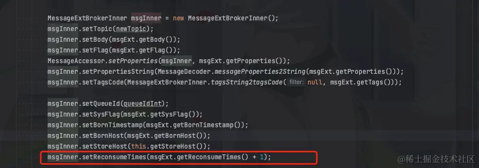 msg.setReconsumeTimes(msg.getReconsumeTimes() + 1);
