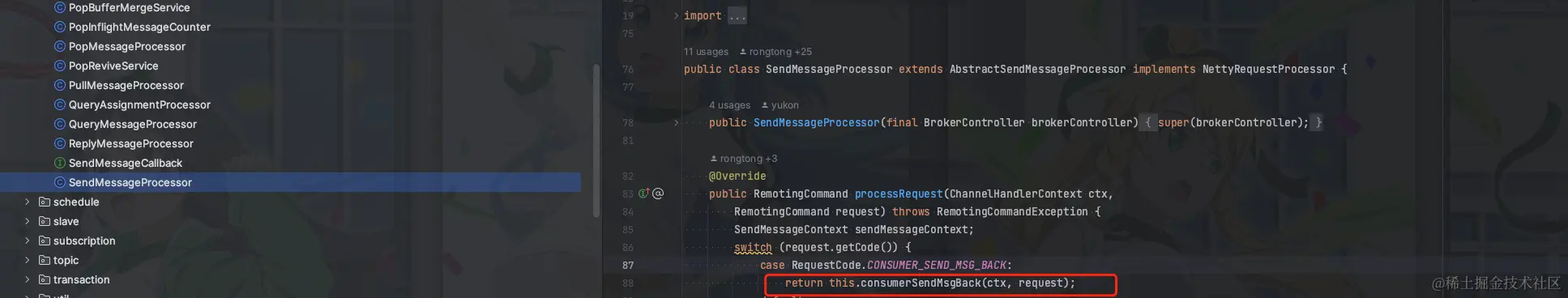 处理RequestCode.CONSUMER_SEND_MSG_BACK请求的主要是SendMessageProcessor