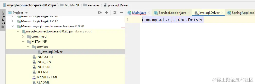 - 首先在使用JDBC时,rt.jar中的接口会被BootStrapClassLoader加载,然后它的实现类由AppClassLoader加载,因为导入的驱动是在classPath路径下的。