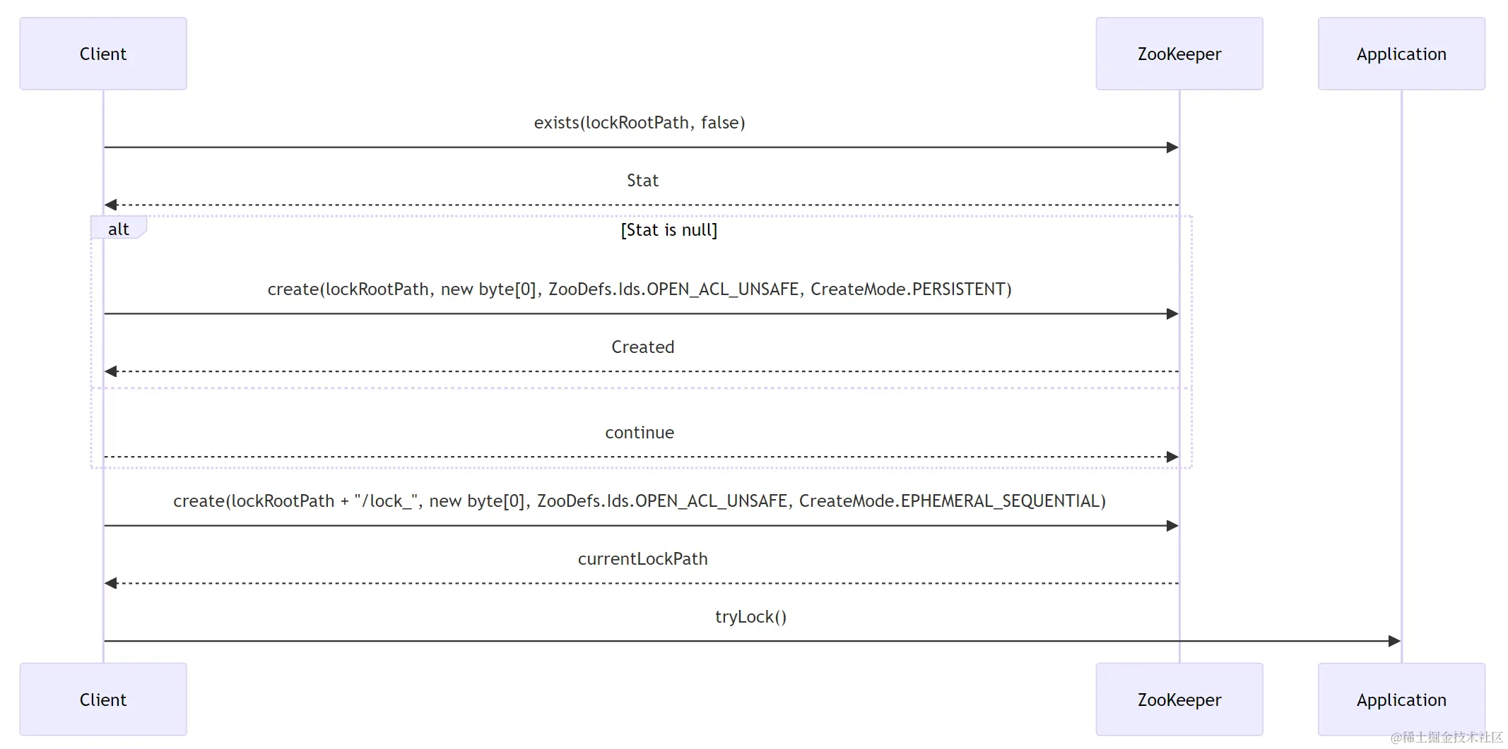 currentLockPath = zooKeeper.create(lockRootPath + "/lock_", new byte[0],