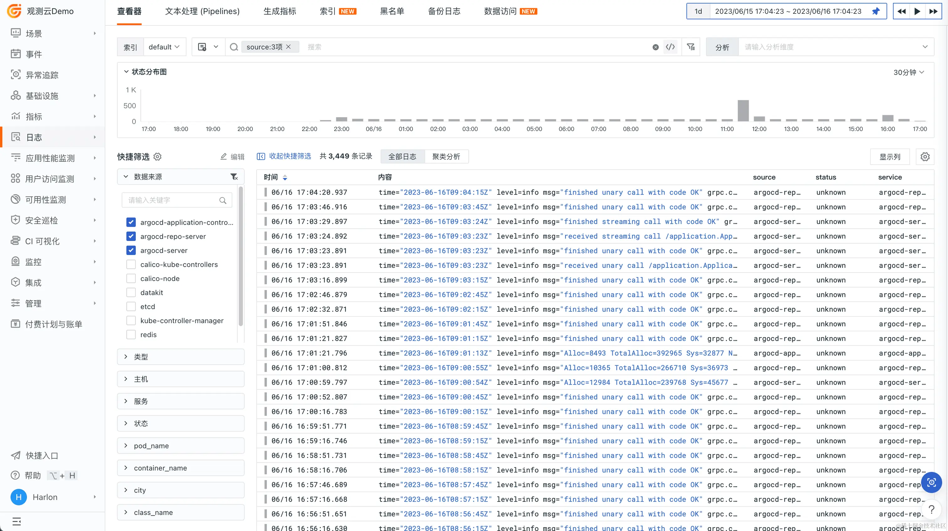 安装 DataKit 采集器之后,默认会采集 Argo CD Pod 输出的日志,无须其他配置。