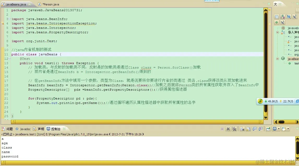 今天第一次解除Java内省机制,虽然没有什么即为深入的了解,但经过初步的学习后我将Java内省机制初步理解为对于Java代码的一种规范化管理机制。