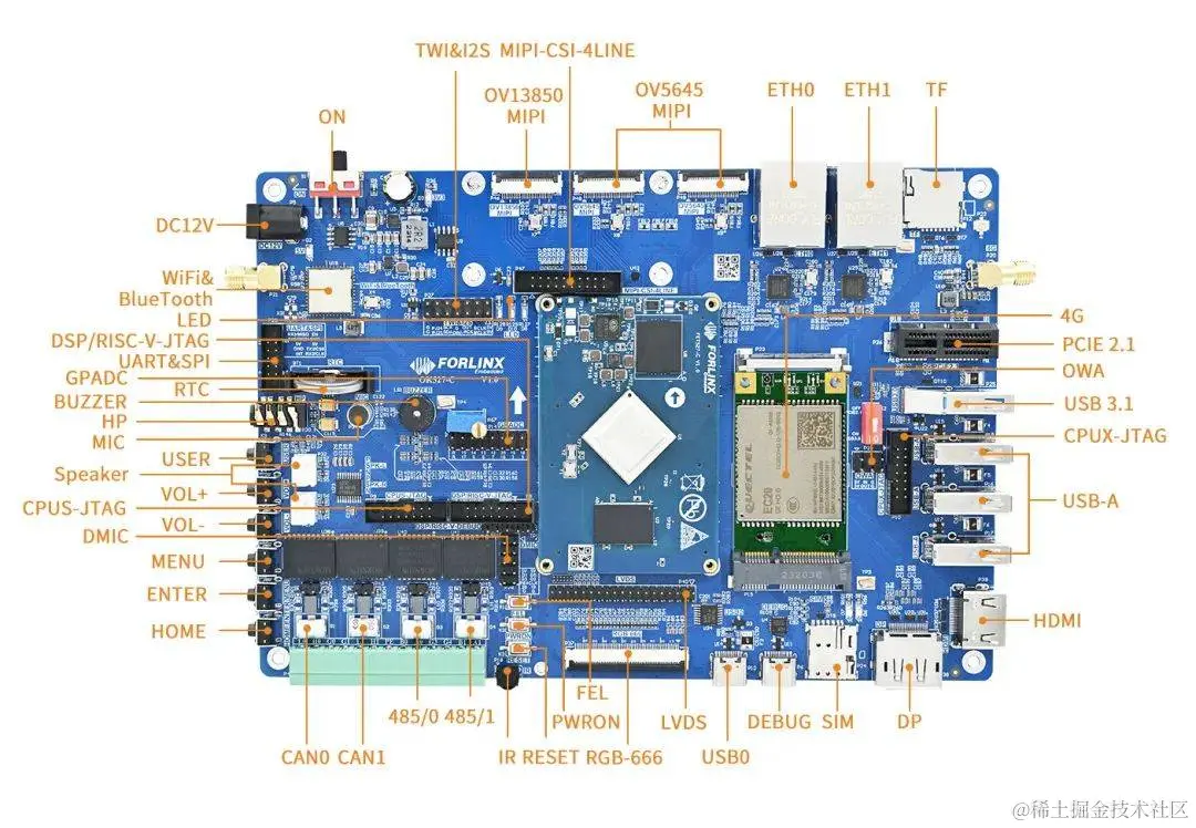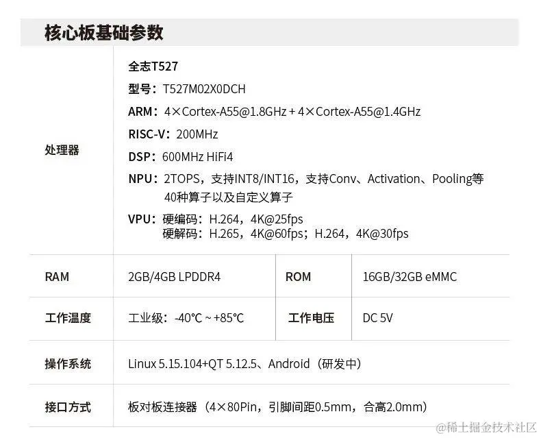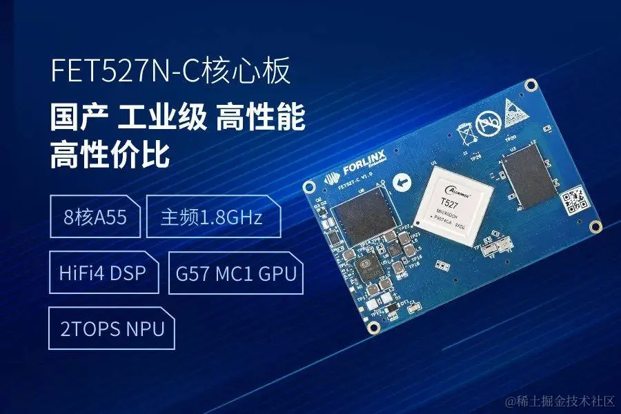T527系列是全志科技为工业应用等领域研发的新一代国产处理器,有T527、T527N等多个不同型号,该处理器集成了8个ARM Cortex-A55高性能核,数据处理能力达36.7KDMIPS,内置1个RISC-V核和1个DSP核,HiFi4 DSP支持异构音效处理。