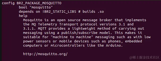 在以上5种文件中Config.in和demo.mk是必须的,其他文件按需配置即可。具体配置内容可参考已有文件或根据实际情况进行书写。Mosquitto已经有写好的配置文件,可以直接用,一般配置文件由项目的维护者或开发者提供,如果自己移植的文件没有配置文件,可以参考已有配置文件写一个。