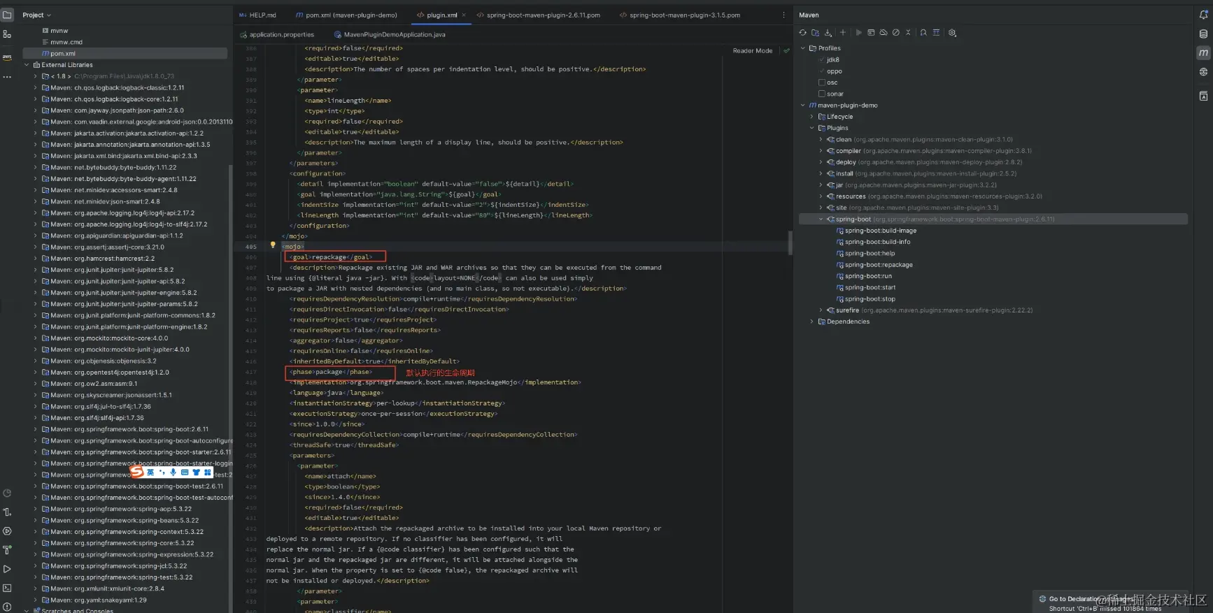 alt+点击`repackage`可以查看这个goal生成的plugin.xml文件