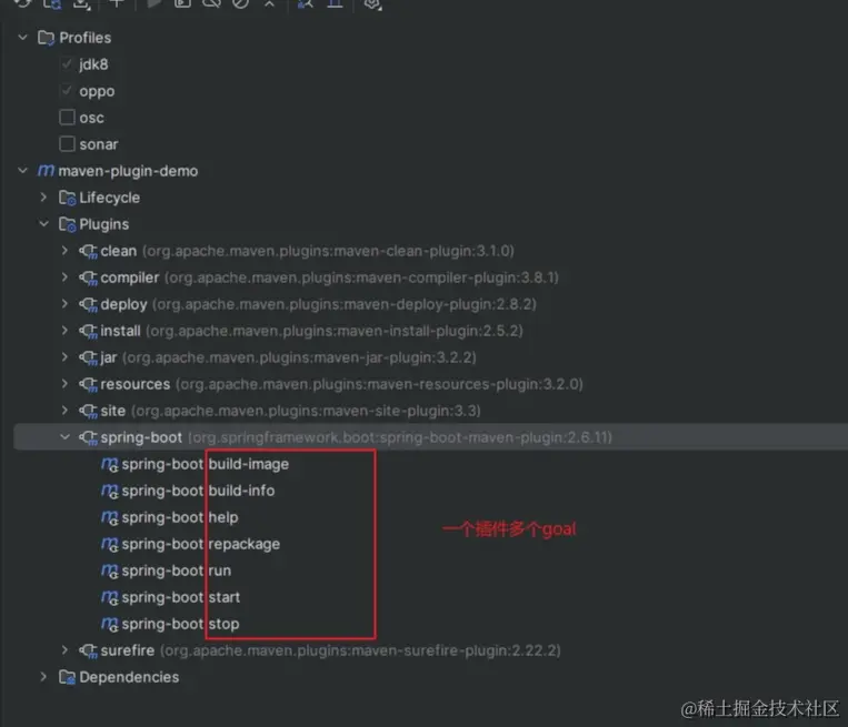 - 一个plugin中可以包含多个goal