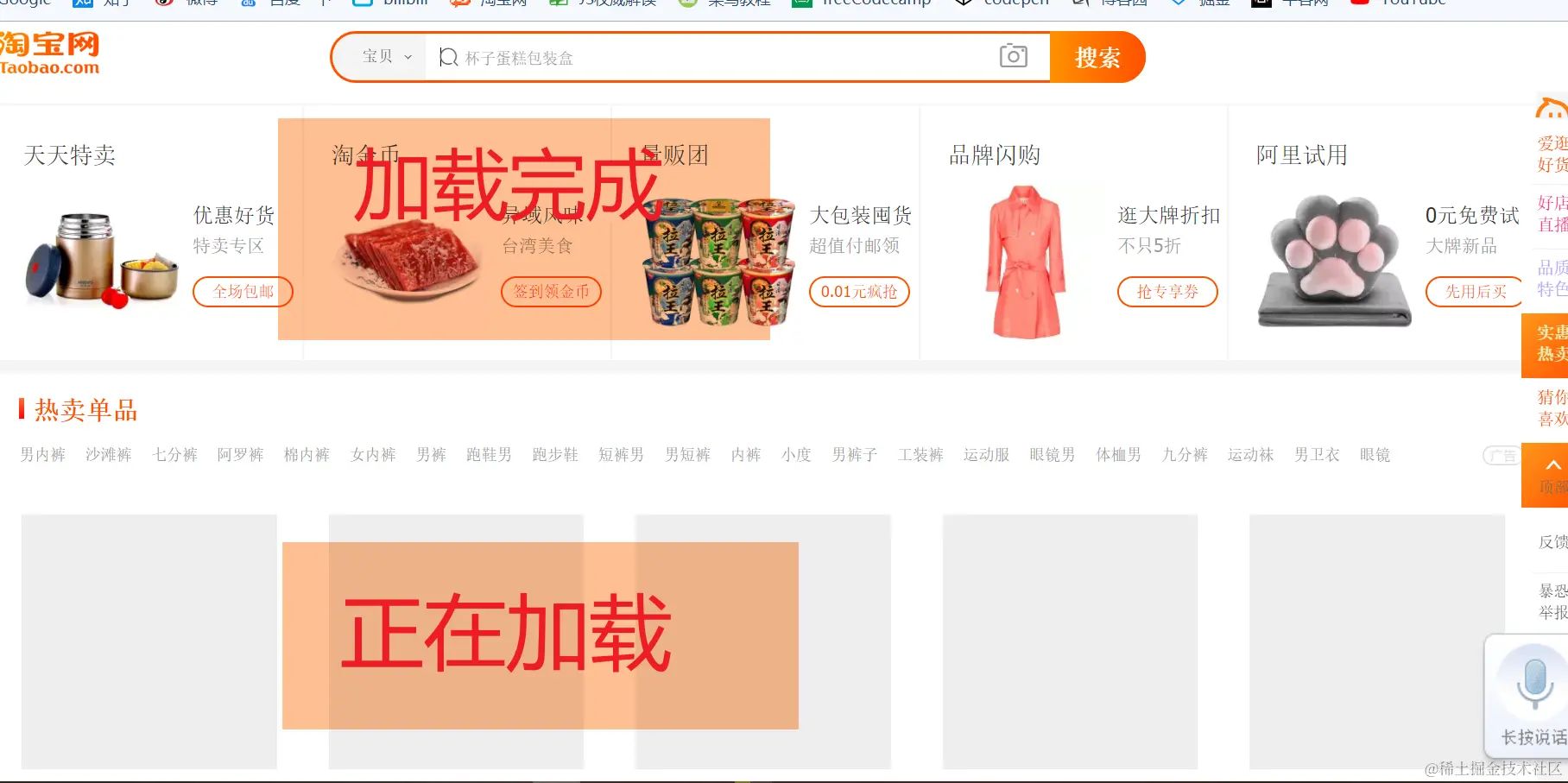 预加载会增加服务器的瞬时压力,但能换来用户体验的提升,典型例子是在一个图片较多的网页中,如上图的淘宝首页。