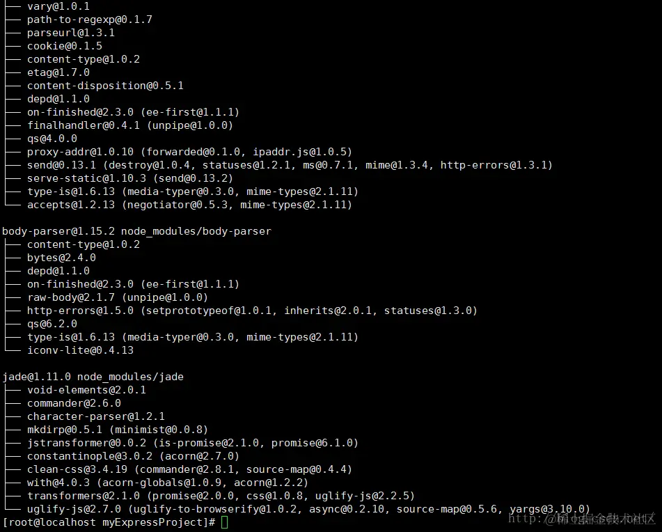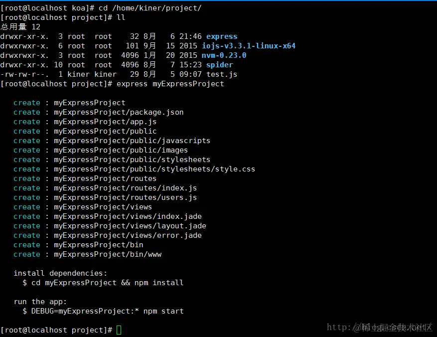 命令中的“myExpressProject”代表你要创建的express项目的名称