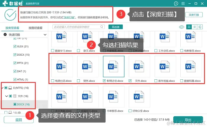 步骤四:预览并勾选深度扫描数据