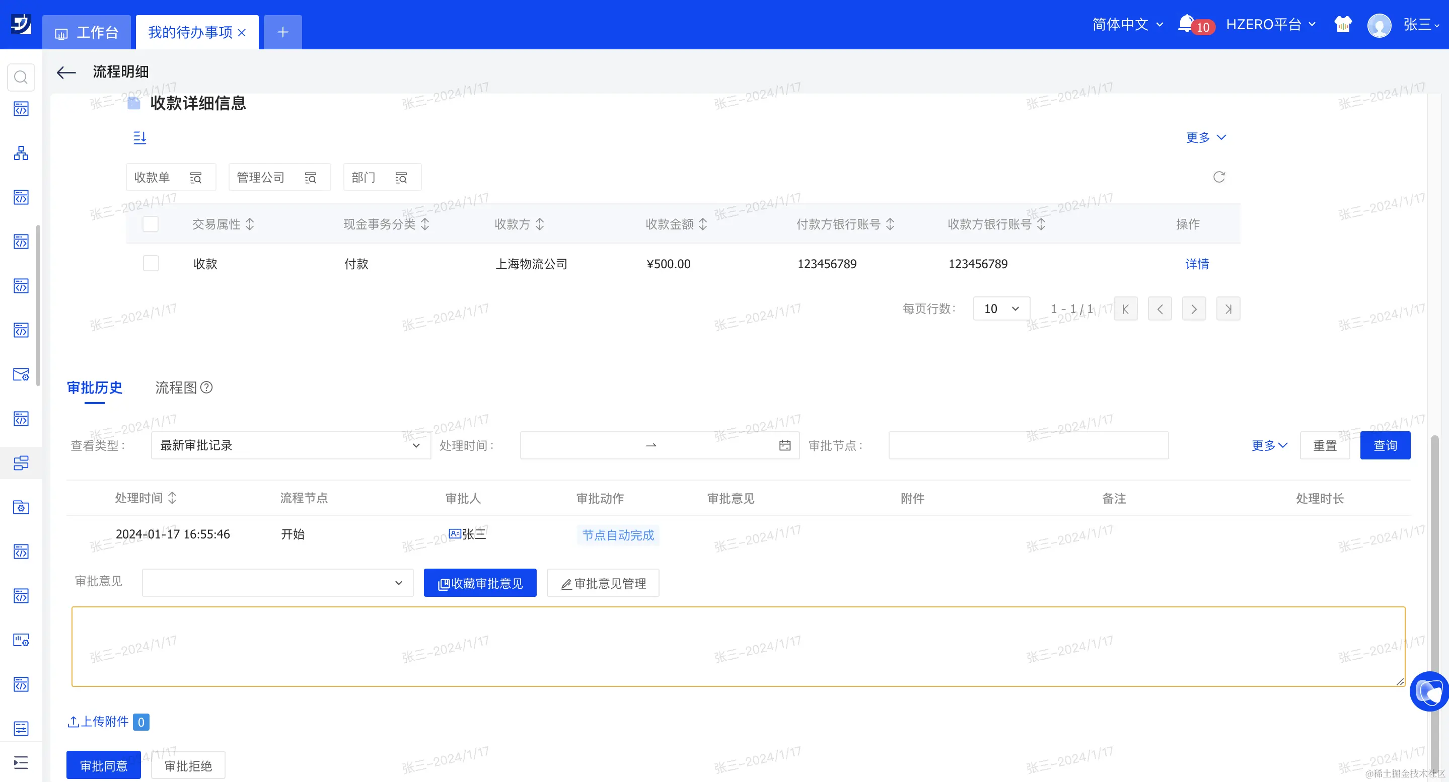 完成页面基本搭建后,对于财务系统中的收款申请功能而言,在用户创建单据后,还需要管理员对收款申请进行审批。