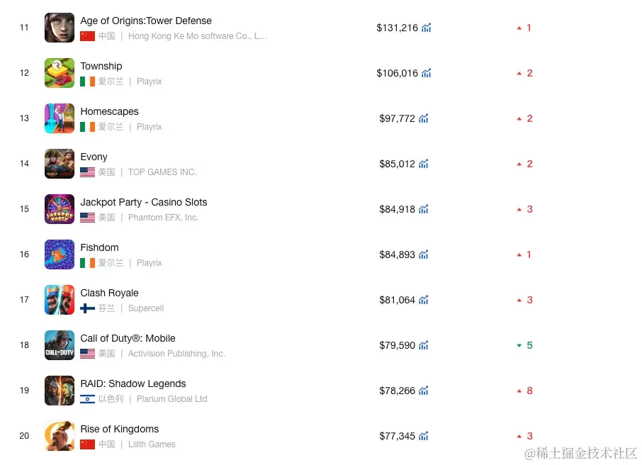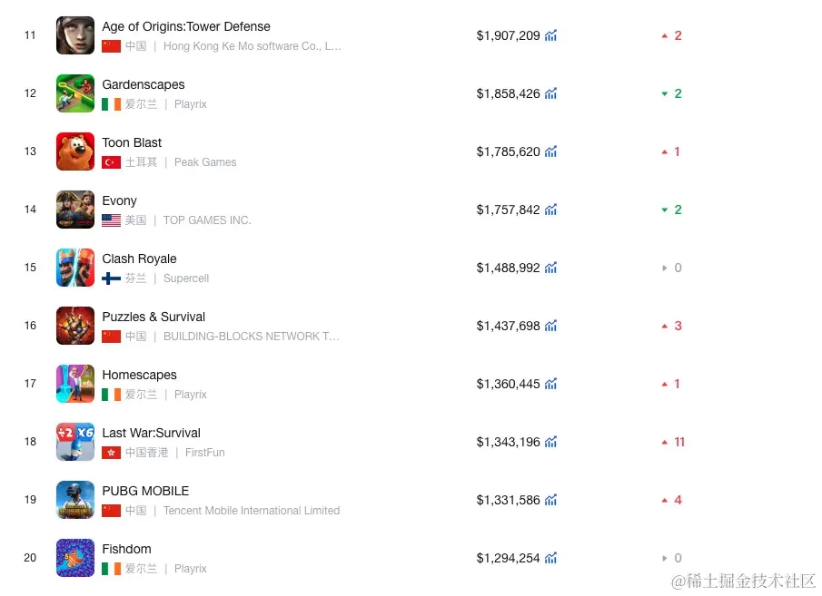 此外来自中国香港的游戏应用Last War:Survival,收入上升明显,提升了9个名次,成为第18名。