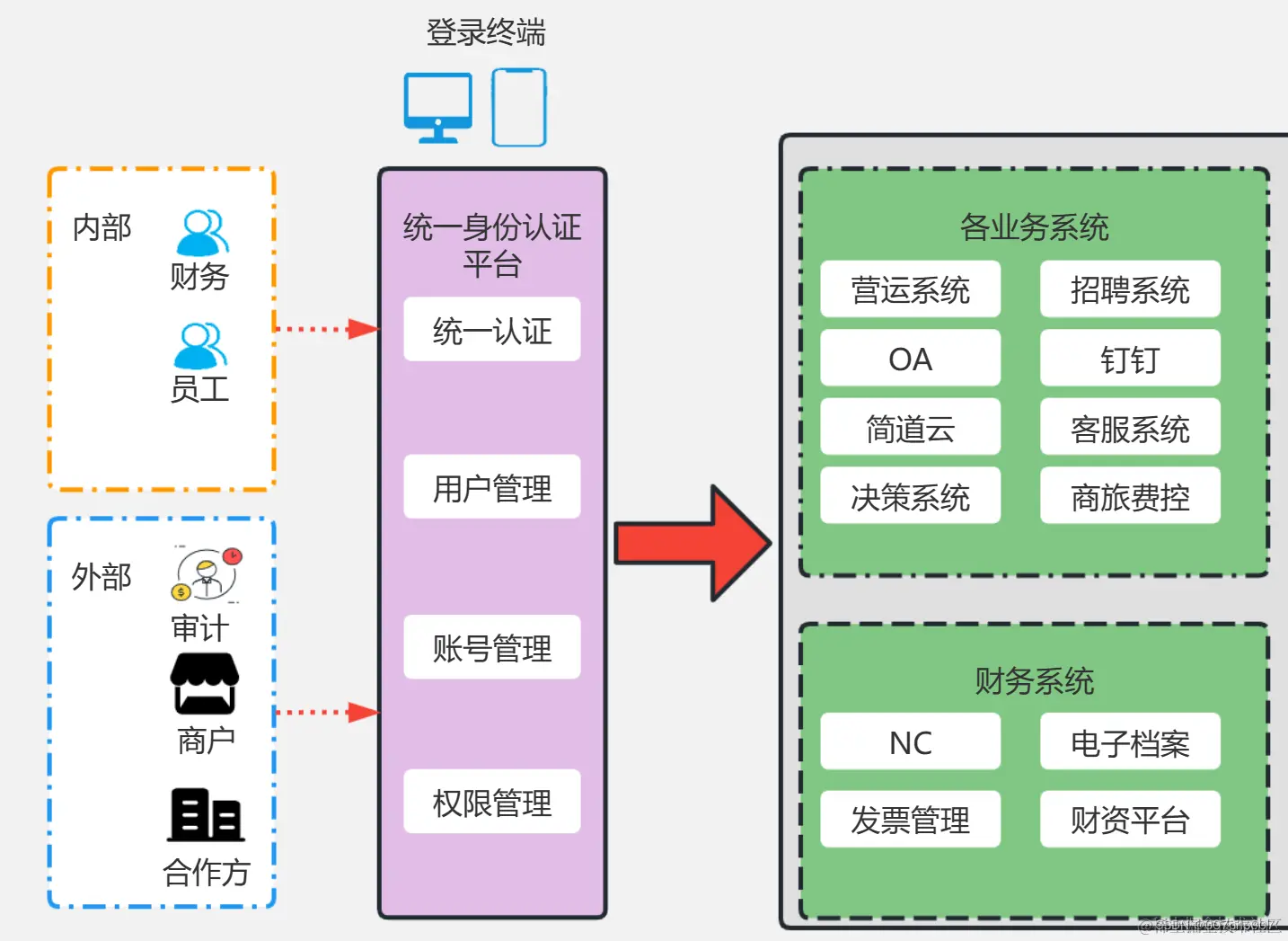 单点登录解决了用户在多个系统间的登录问题,但各个应用仍然需要独立管理用户。为了实现用户身份信息的统一管理,我们需要引入统一身份认证系统。