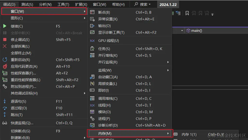 - 打开内存(提前F11启动调试)