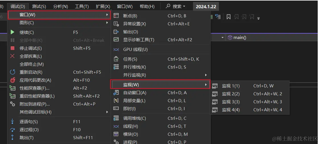 - 打开监视(提前F11启动调试)