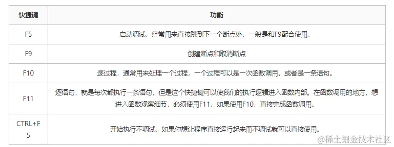 我们在调试过程中可以使用一些快捷键帮助我们节省时间。
