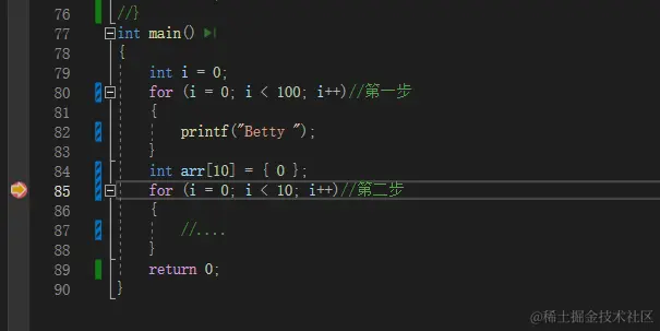 for (i = 0; i < 10; i++)//第二步