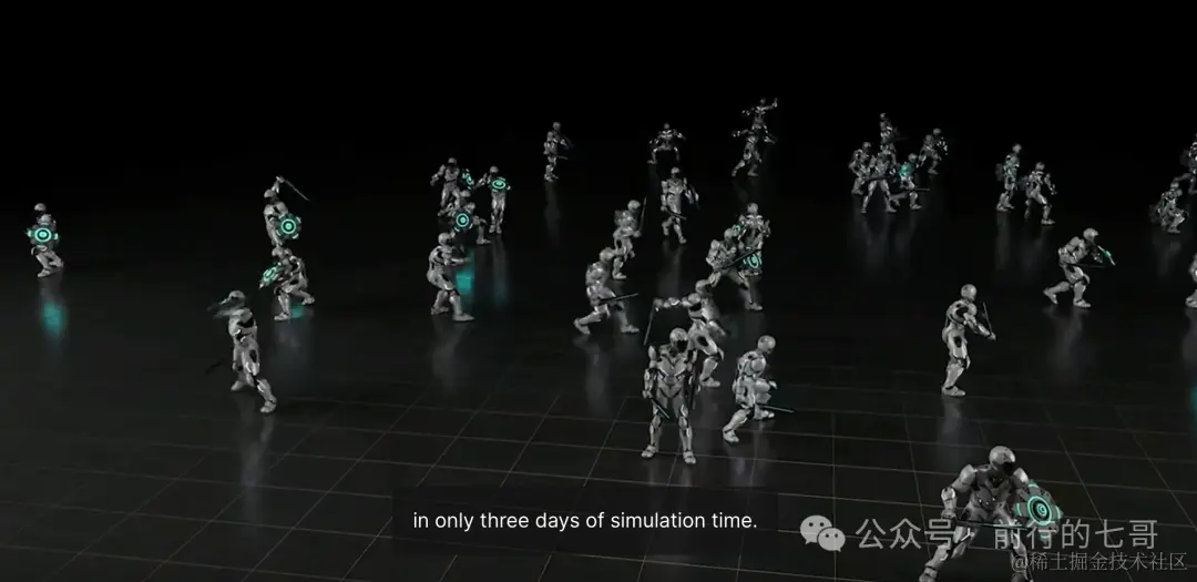 比如上图的机器人手练习,以及下图的机器人学习武术,它可以仅用三天的模拟时间就可以完成在现实中要十年才能完成的刻苦练习。这很像《黑客帝国》中的虚拟陪练道场。