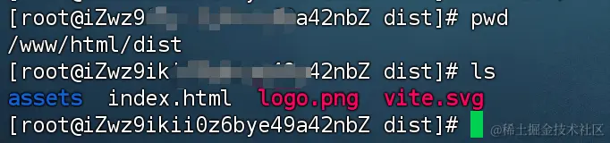 可以看到dist目录也已经上传到了服务器