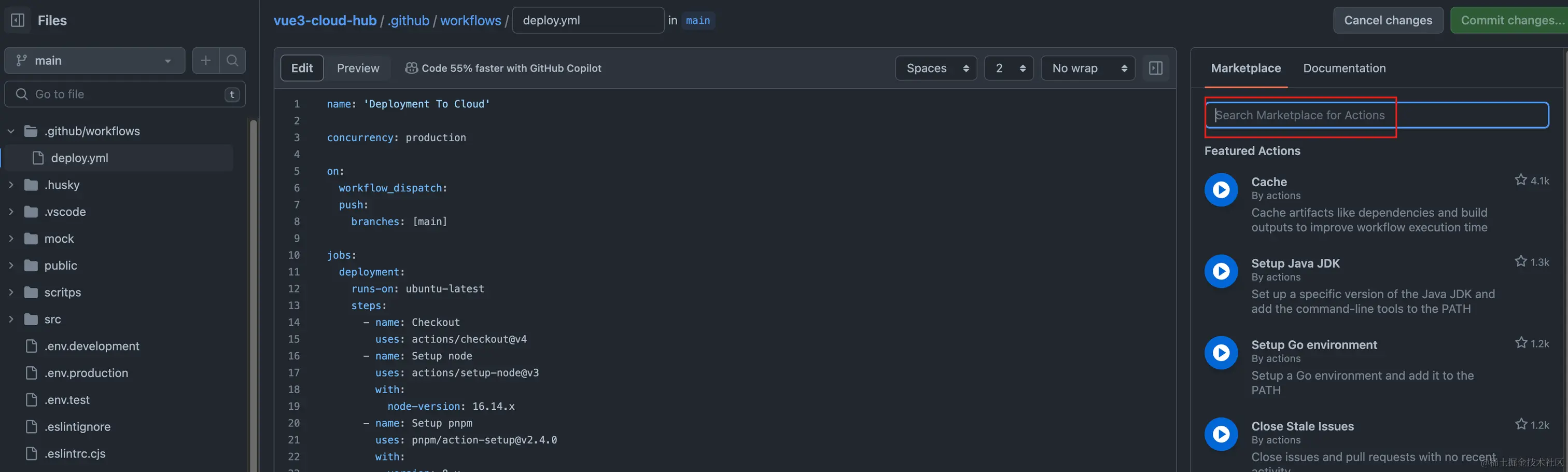 目录,编辑配置文件 deploy,yml