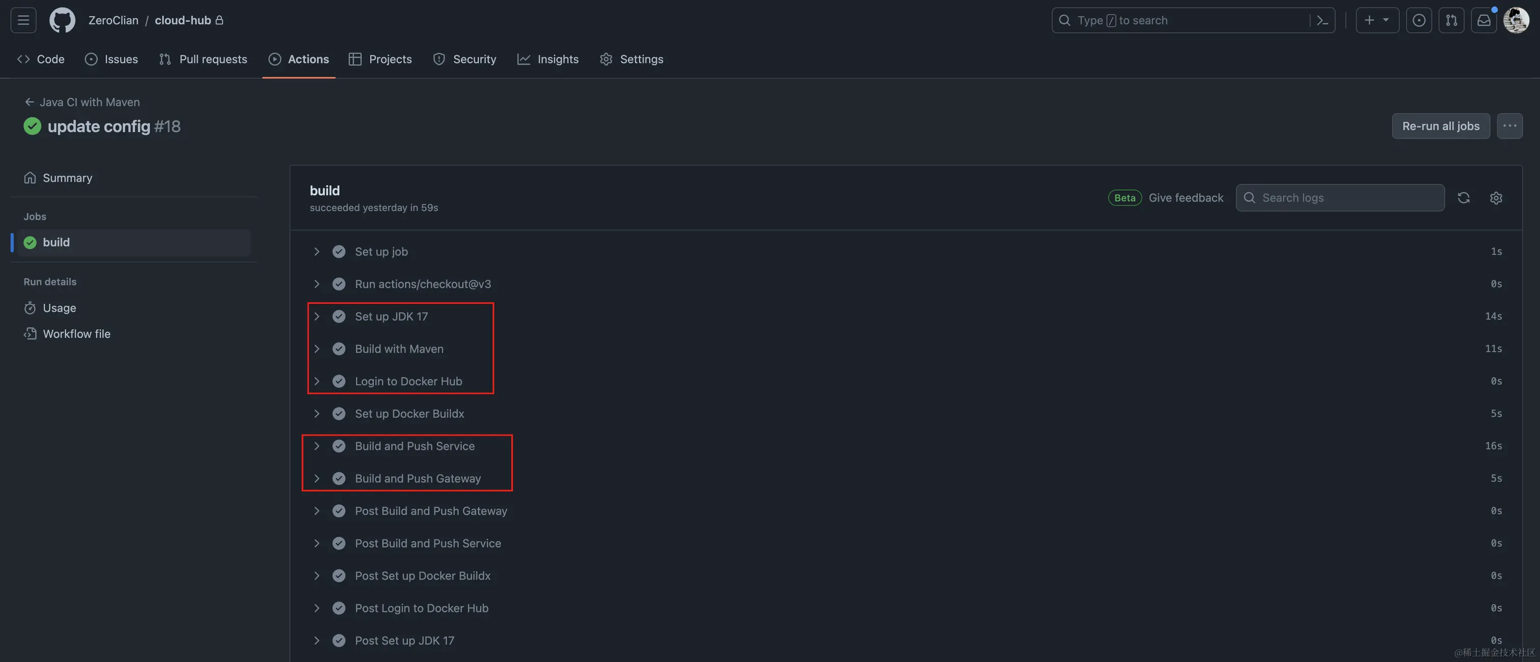 - jobs: 作业组,配置需要执行的一系列步骤,顺序执行