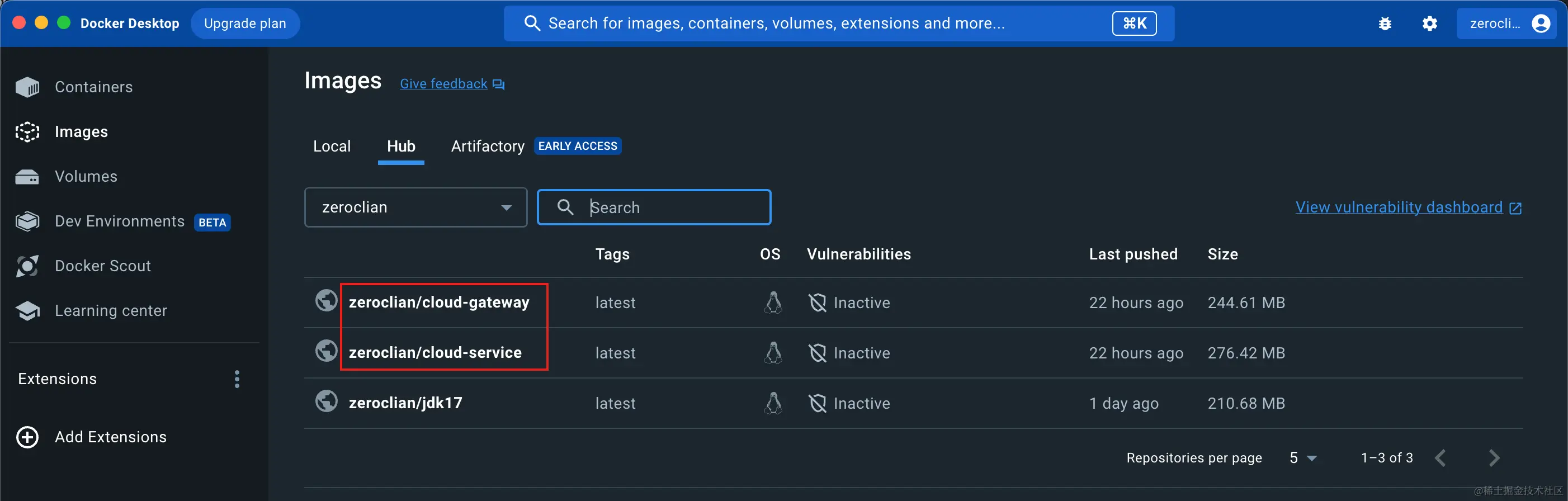 可以看到相关的镜像已经推送到了 Docker Hub 上