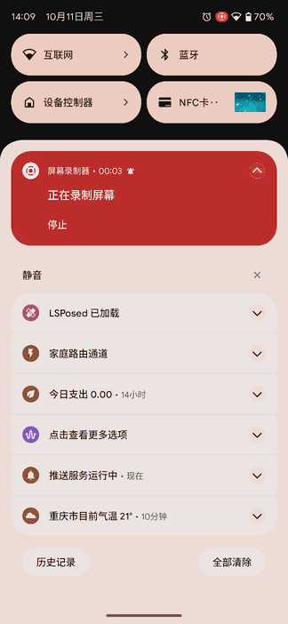 - 当我们点击通知面板中的「清除全部」按钮时,常驻通知不受影响
