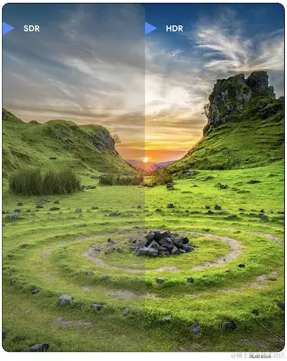根据 Google 的介绍,Ultra HDR 图像格式在保存时会保留来自传感器的更多信息,并在查看时展示更鲜艳的色彩、更高的动态范围和更强烈的对比度,简单来说就是小部分国产厂商近几年在卷的那种 HDR 照片显示效果。值得一提的是 Ultra HDR 格式可以完全向后兼容 JPEG 图像格式,它不仅能在 Google 相册等支持 HDR UI 的应用中被正确解码,在未适配 HDR 或不支持 HDR 显示的设备上,Ultra HDR 格式图像也能回落至标准动态范围(SDR)来正常显示。