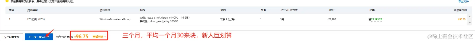 - ⠀配置完成之后,点击下一步,确认提交订单。