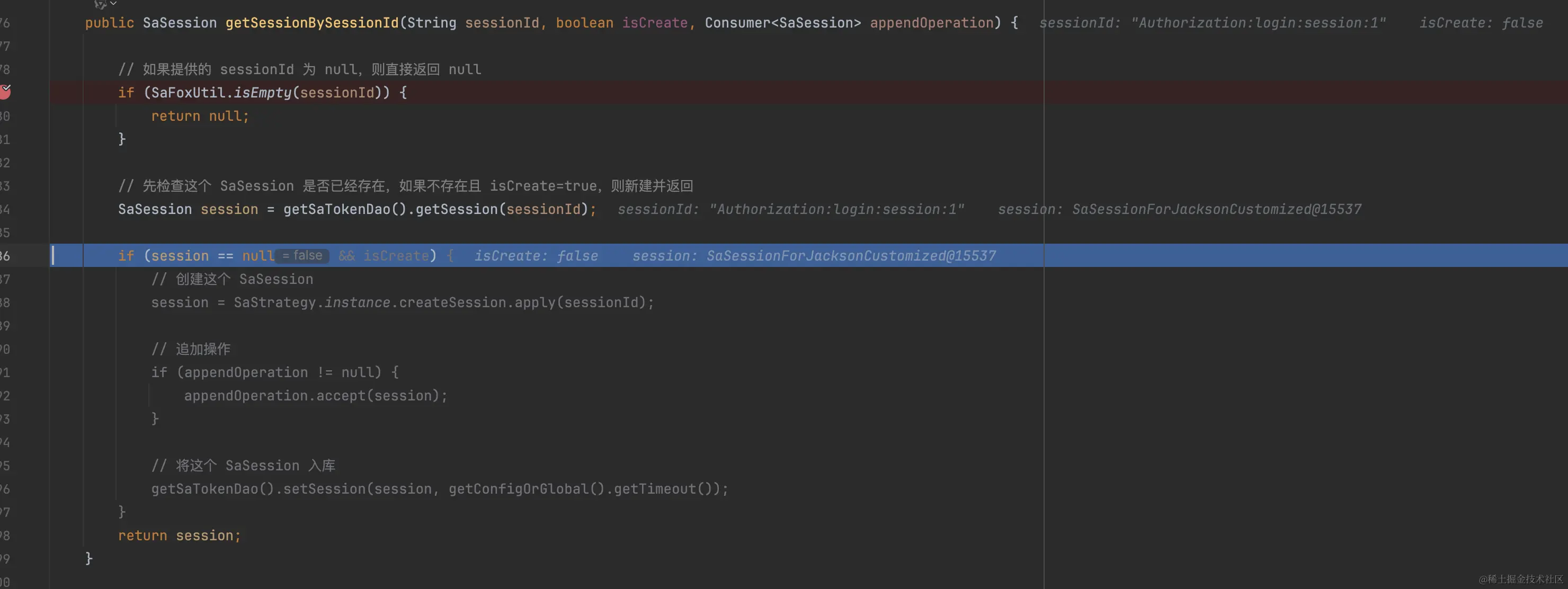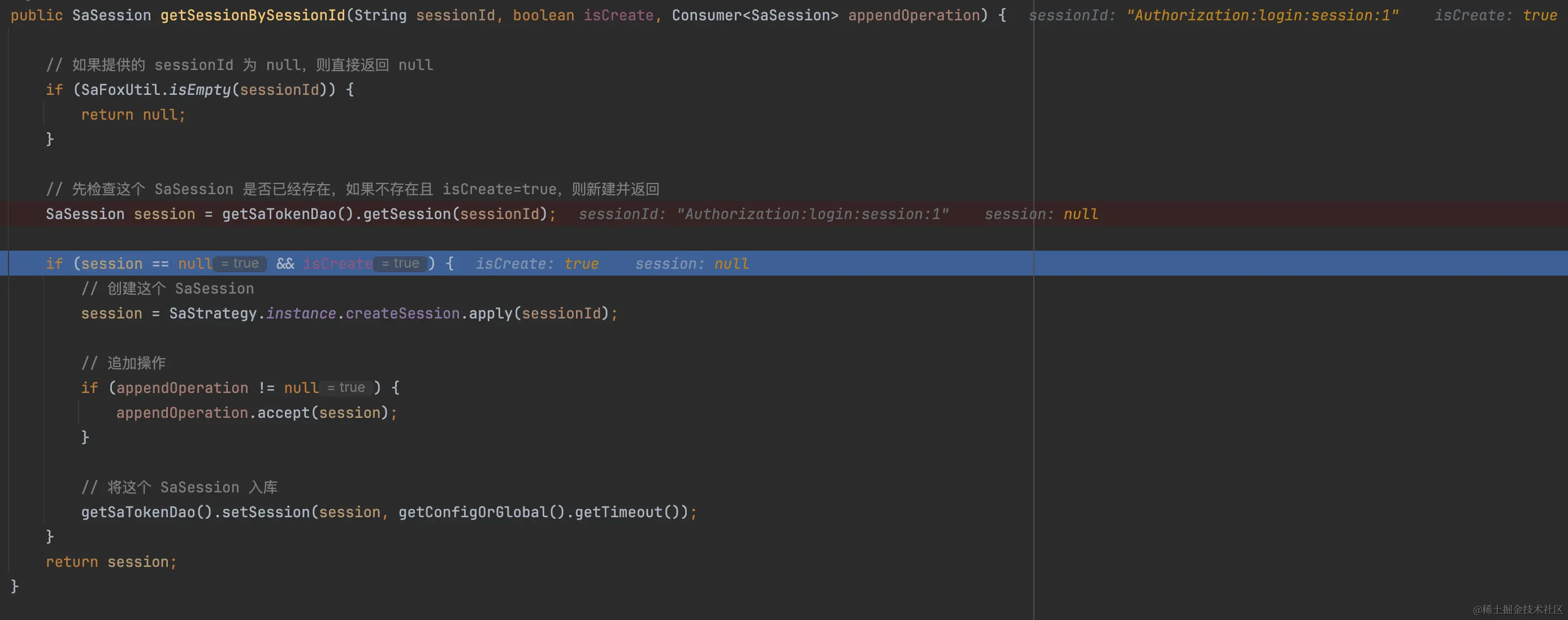 发现没?又是getSessionByLoginId,不过这次传入isCreate=true。