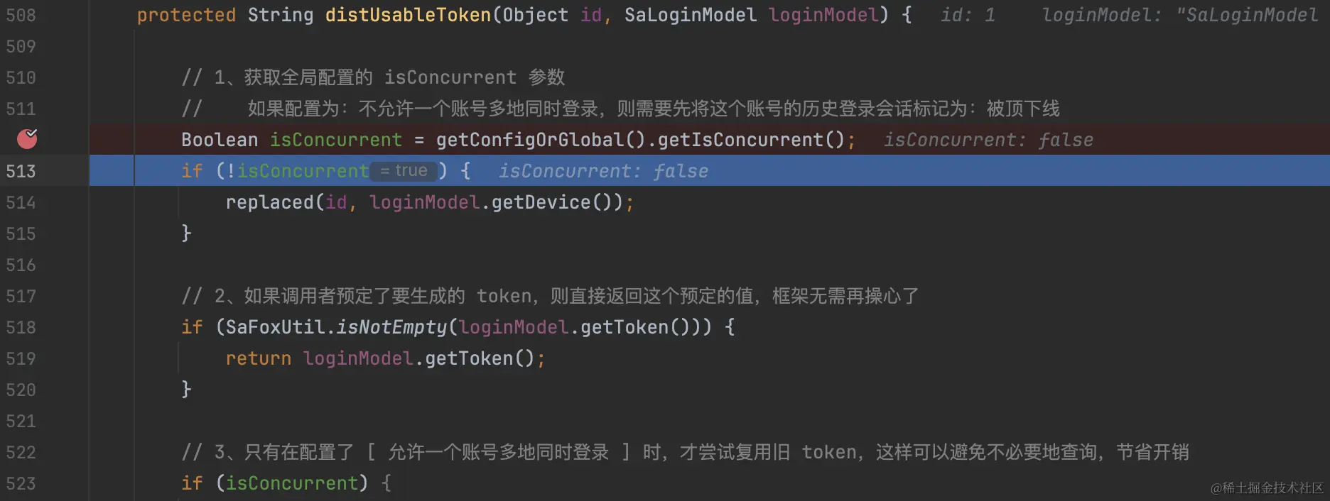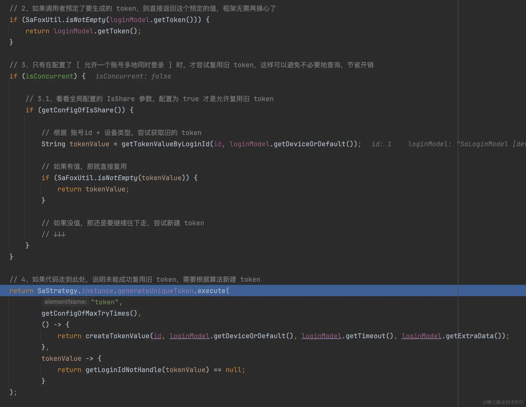 // 3、只有在配置了 [ 允许一个账号多地同时登录 ] 时,才尝试复用旧 token,这样可以避免不必要地查询,节省开销