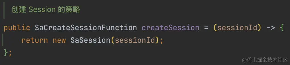如下方法可知,在查不到sessionId的session时使用SaStrategy类来创建session,这个SaStrategy类实际上是一个单例类,其中有很多策略方法,这个可以下次单独拎出来讲的。