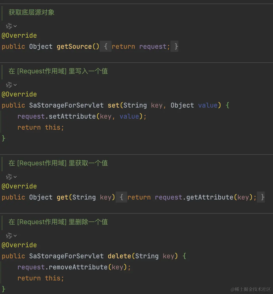 SpringMVC环境下,就是SaStorageForServlet,实际操作的是HttpServletRequest,点开就看到了。