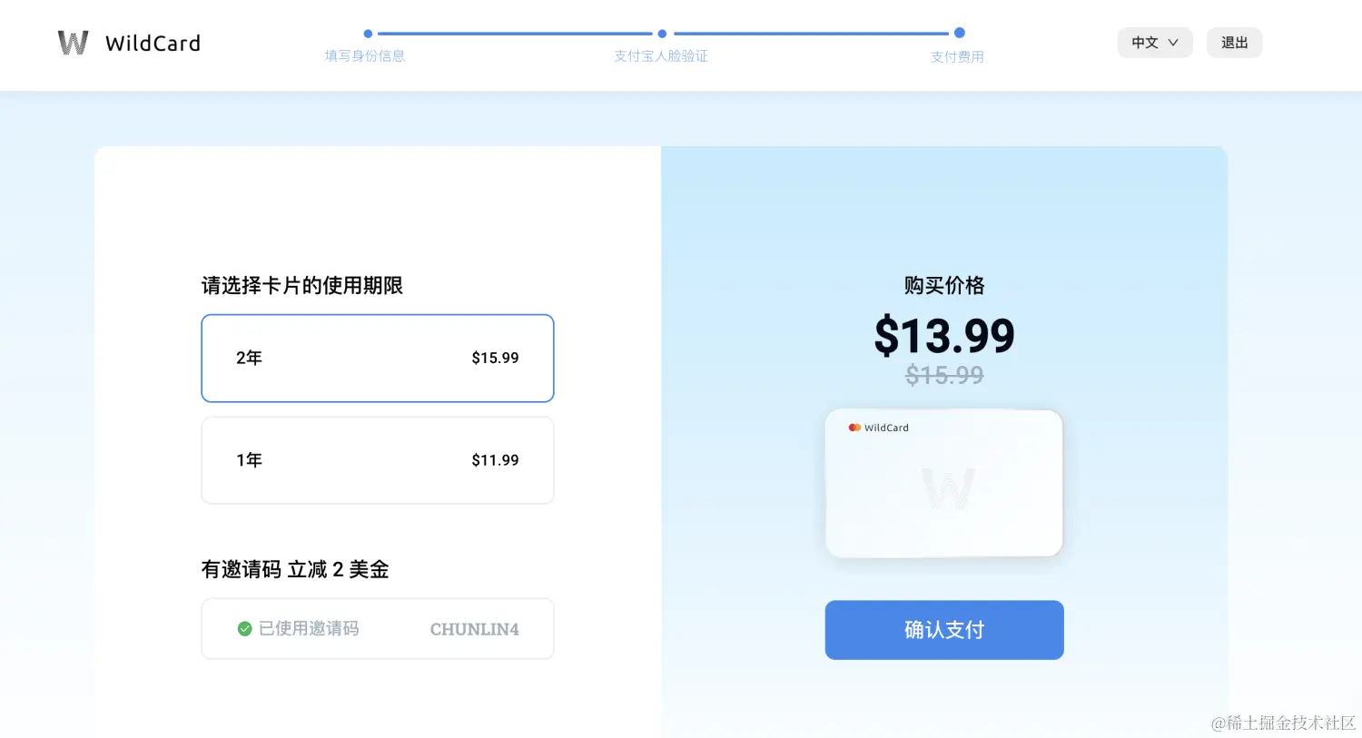 注册bewildcard,完成实名认证,通过支付宝扫码进行开卡支付。建议选择2年卡,性价比超高!!