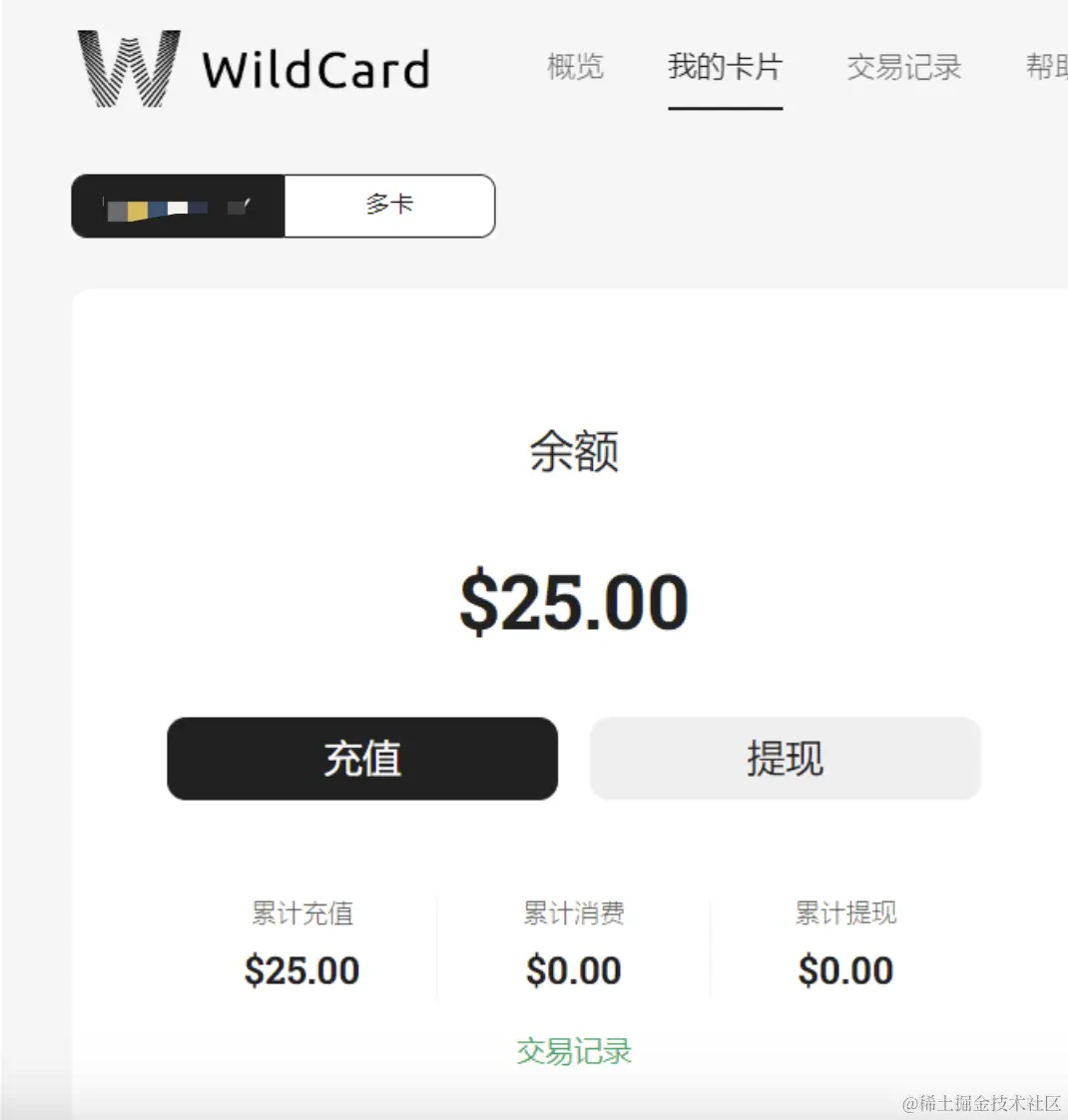 WildCard 最低支持充值 25 美元,建议第一次充值 25 美元,因为在首次绑定 OpenAI API 时会预付费 5 美元。