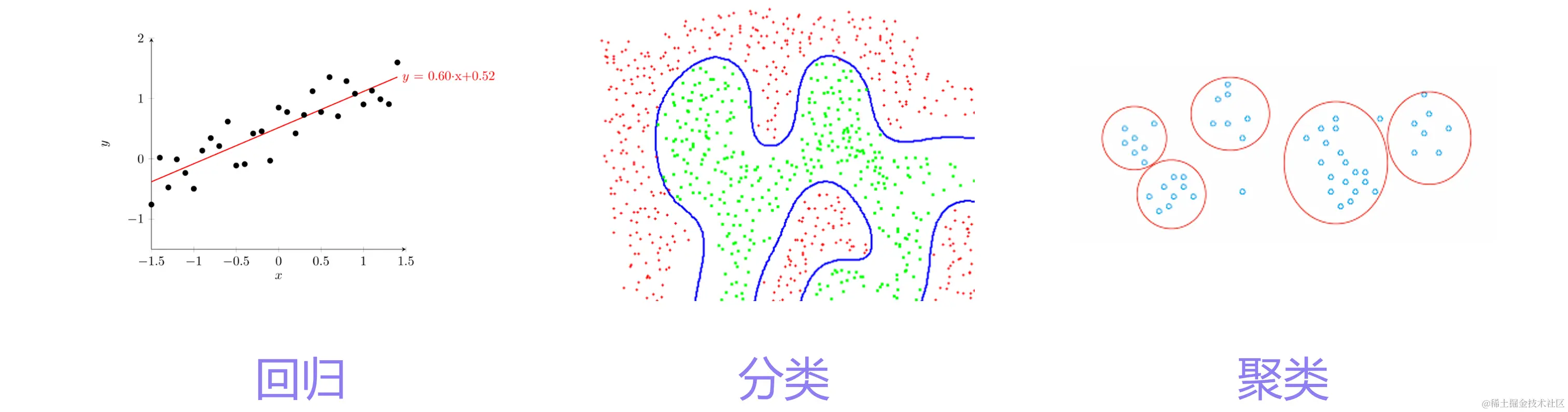 常见的机器学习问题可以归类为:回归问题、分类问题、聚类问题