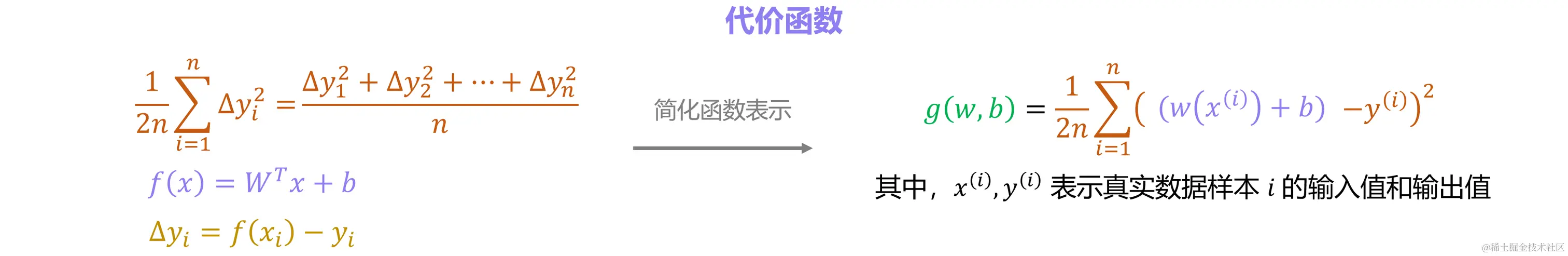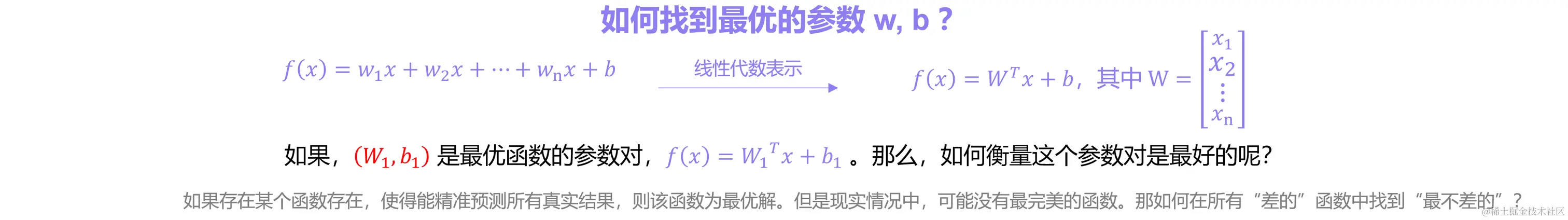 从上述房价的函数式可以知道,房价最终是由 w 和 b 决定。