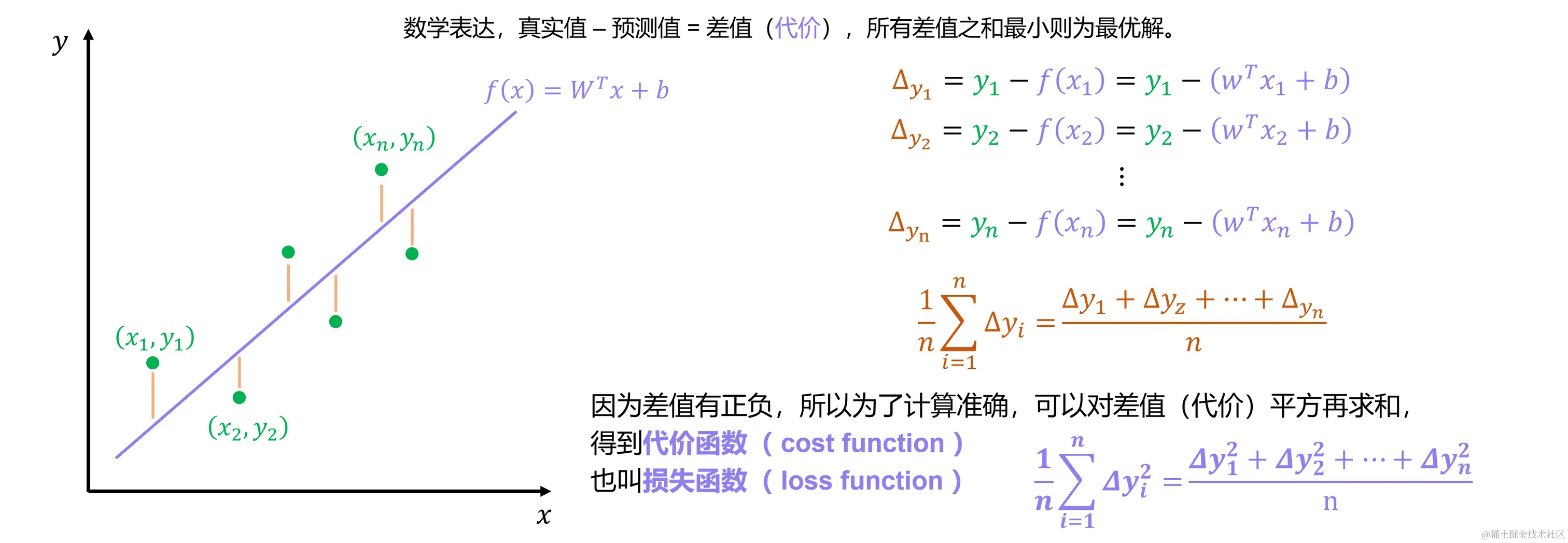 正如上图所说:如果存在某个函数存在,使得能精准预测所有真实结果,则该函数为最优解。但是现实情况中,可能没有最完美的函数。那如何在所有“差的”函数中找到“最不差的”?