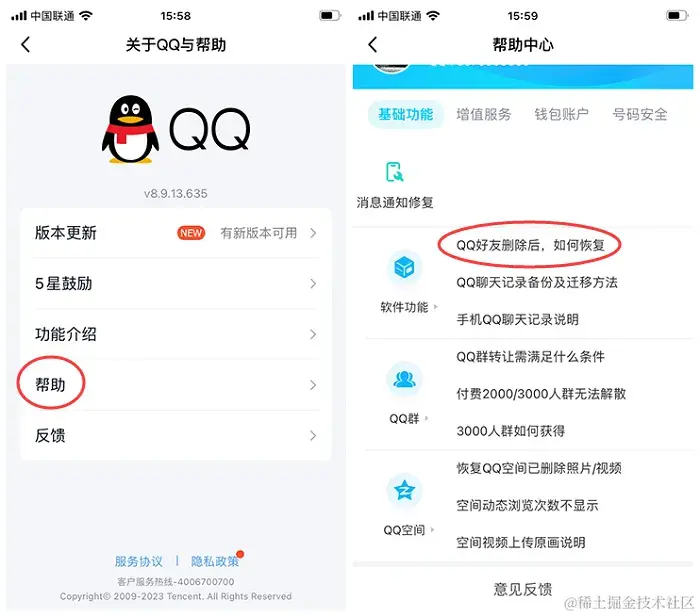 步骤2:点击**【帮助】,在【软件功能】右侧找到并点击【QQ好友删除了,如何恢复】**选项。进入该界面后,尝试在手机端或者电脑端进行QQ好友的恢复。