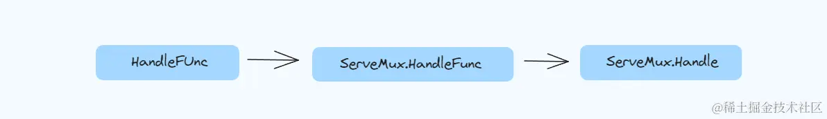 🚩 HandlerFunc(handler), 通过类型转换的方式【handler -->HandlerFunc】将一个出入参形式为func(ResponseWriter, *Request)的函数转换为HandlerFunc类型,而HandlerFunc实现了Handler接口,所以这个被转换的函数handler可以被当做一个Handler对象进行赋值。