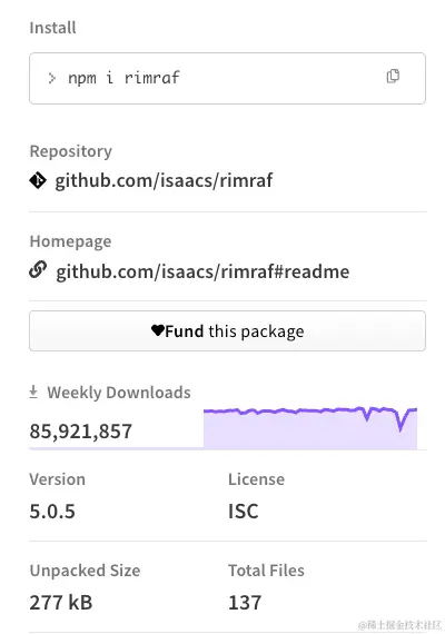 例如 rm -rf 在 Windows 上无法使用,因此 rimraf 这个包很流行,每周下载量在 8000kw 左右