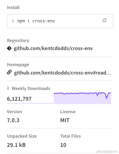 envKey=envValue script 这种设置环境变量的方式在 Windows 上也不生效,因此有了 cross-env 解决这个问题,周下载量 600w