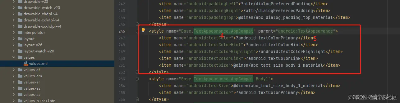 如果跟进下代码,会发现 父TextAppearance.AppCompat 中已经引用了 @android:style/TextAppearance