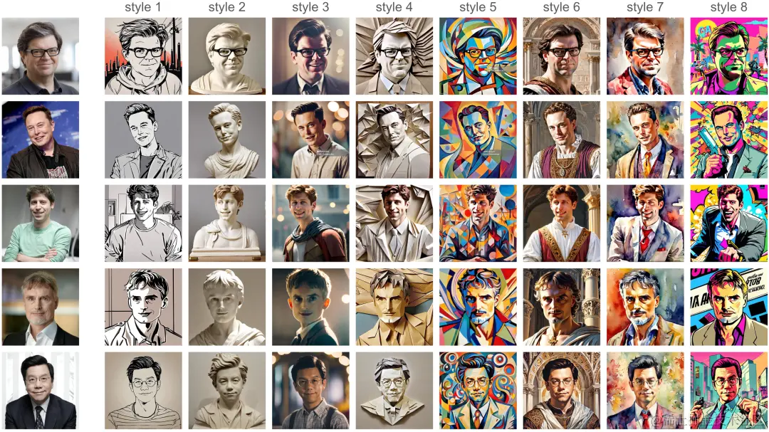 - 多样化风格生成:InstantID能够根据一张人脸图像,生成多种风格的图像。这种能力使得它在个性化图像生成方面表现卓越。